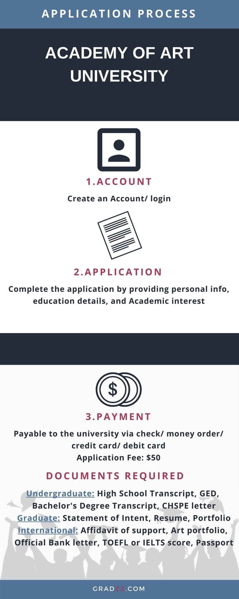 Academy of Art University’s admission process is simple and easy to make sure the students can easily apply for the courses and pursue their education career.